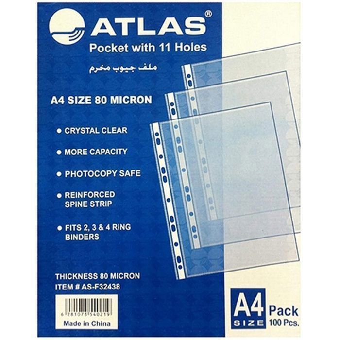 POCHETTE PERFOREE A4 80m ATLAS quantity